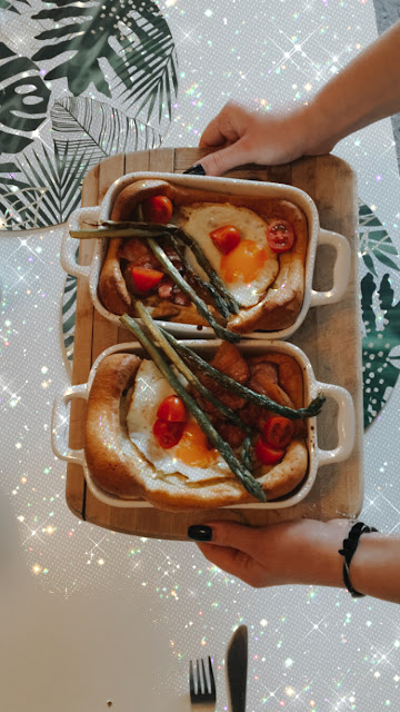 Każdy kto mnie zna, wie że nie jestem miłośniczką słodkich śniadań, wolę raczej wytrawne wersję śniadań dla mistrzów. Tak też było i tym razem. Połączenie idealne-szparagi, jajko sadzone i boczek.